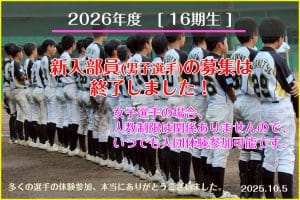 2026年度 16期生の新入部員(男子選手)の募集は終了しました。